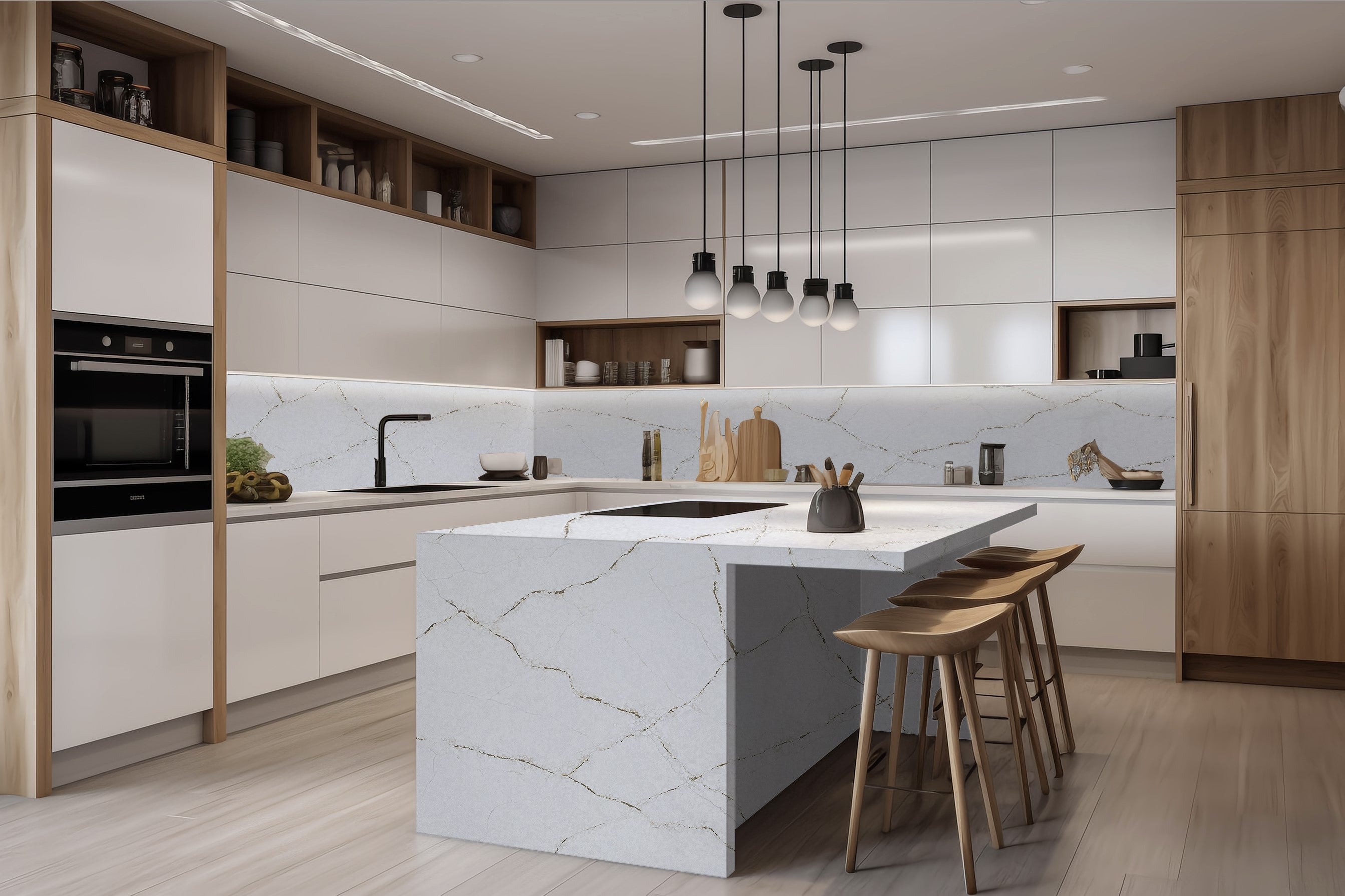 Experience the allure of premium quartz, where form meets function in every kitchen.